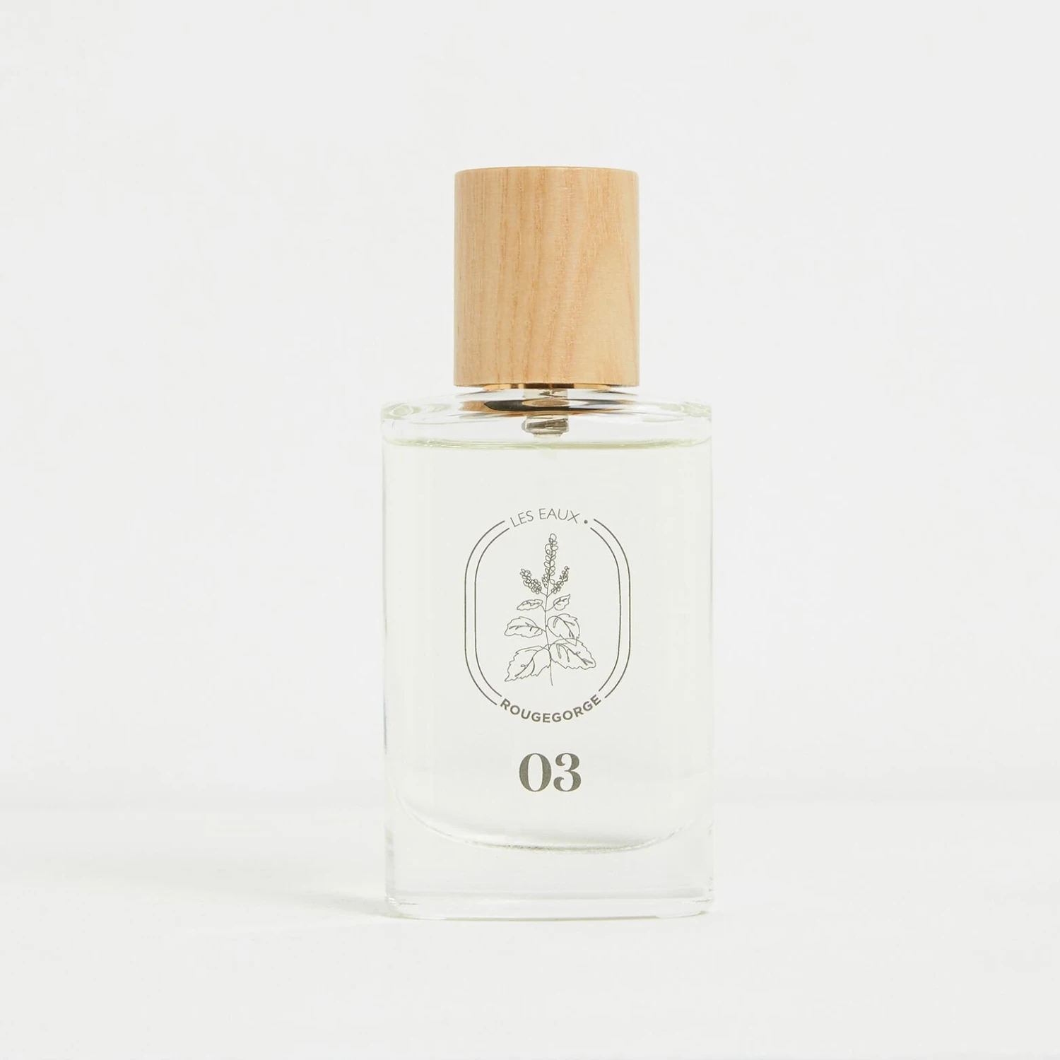 Eau de parfum n°3 : bergamote, praline rose, patchouli – Note de tête : bergamote, pamplemousse – Note de coeur : praline rose, bois de cèdre – Note de fond : patchouli, vanille – Contenance 30 ml – Vaporisateur – Flacon transparent joliment décoré – Gros bouchon en bois – Parfum fabriqué en France – Création exclusive RougeGorge.