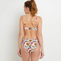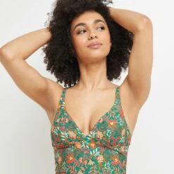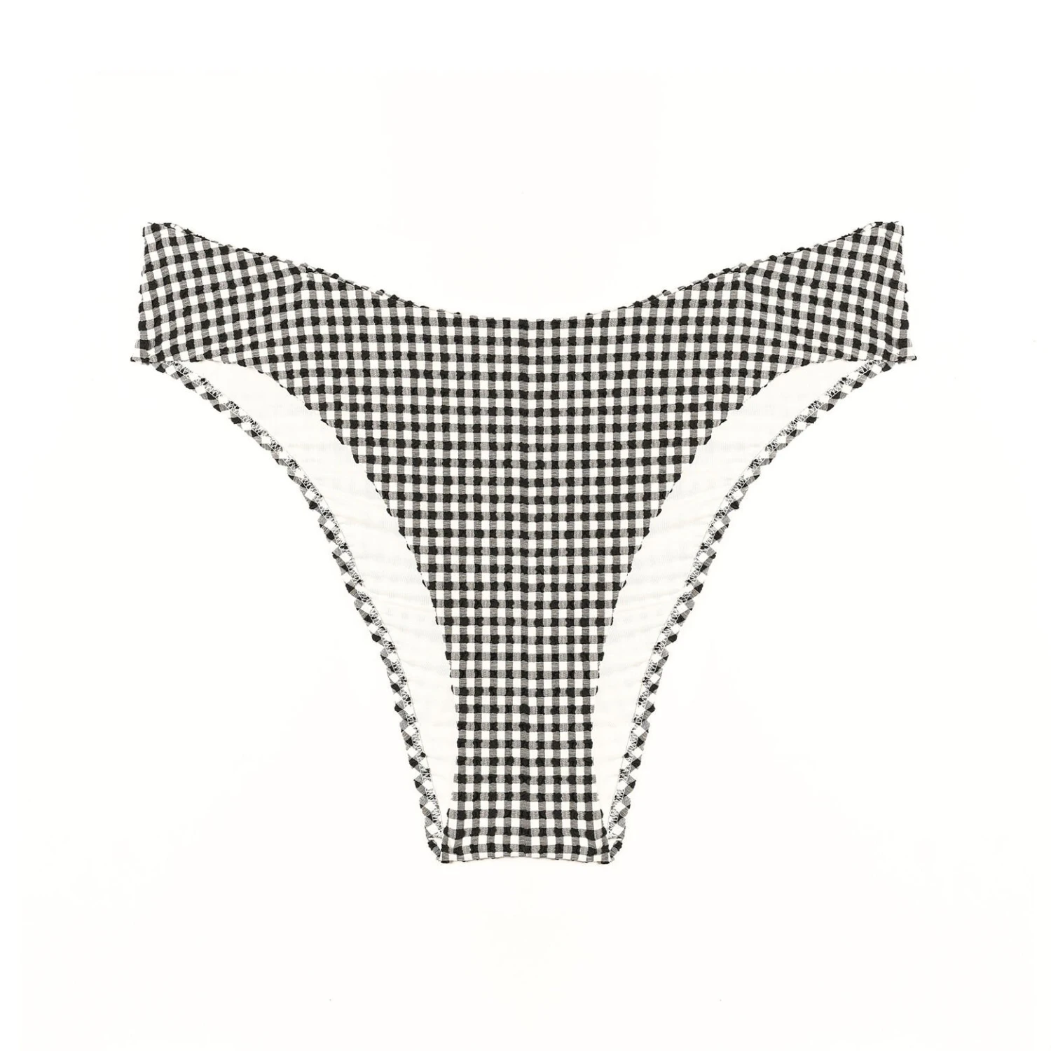 « Le maillot de bain au charme délicieusement vintage, co-conçu avec les filles de la communauté leel cette saison pour sublimer les formes des silhouettes généreuses, en vous apportant confiance et style. Le 2 pièces BONNIE affiche un irrésistible imprimé vichy, des lignes graphiques parfaitement étudiées, et 2 culottes au choix : plus ou moins échancrées. »