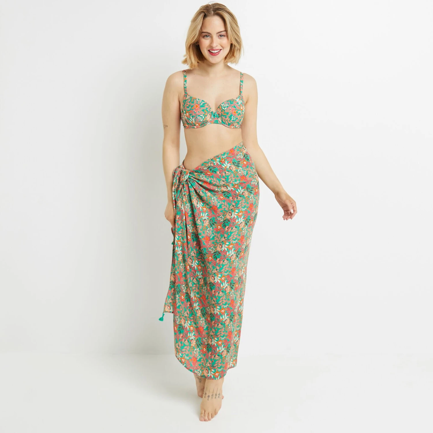 « Une ligne de plage conçue en viscose ecovero ou fibres recyclées (40% minimum), selon les pièces : paréo, tunique, maillots… leurs joyeux motifs fleuris, leurs couleurs pimpantes, leur douceur sur la peau… c’est le bonheur, point. »