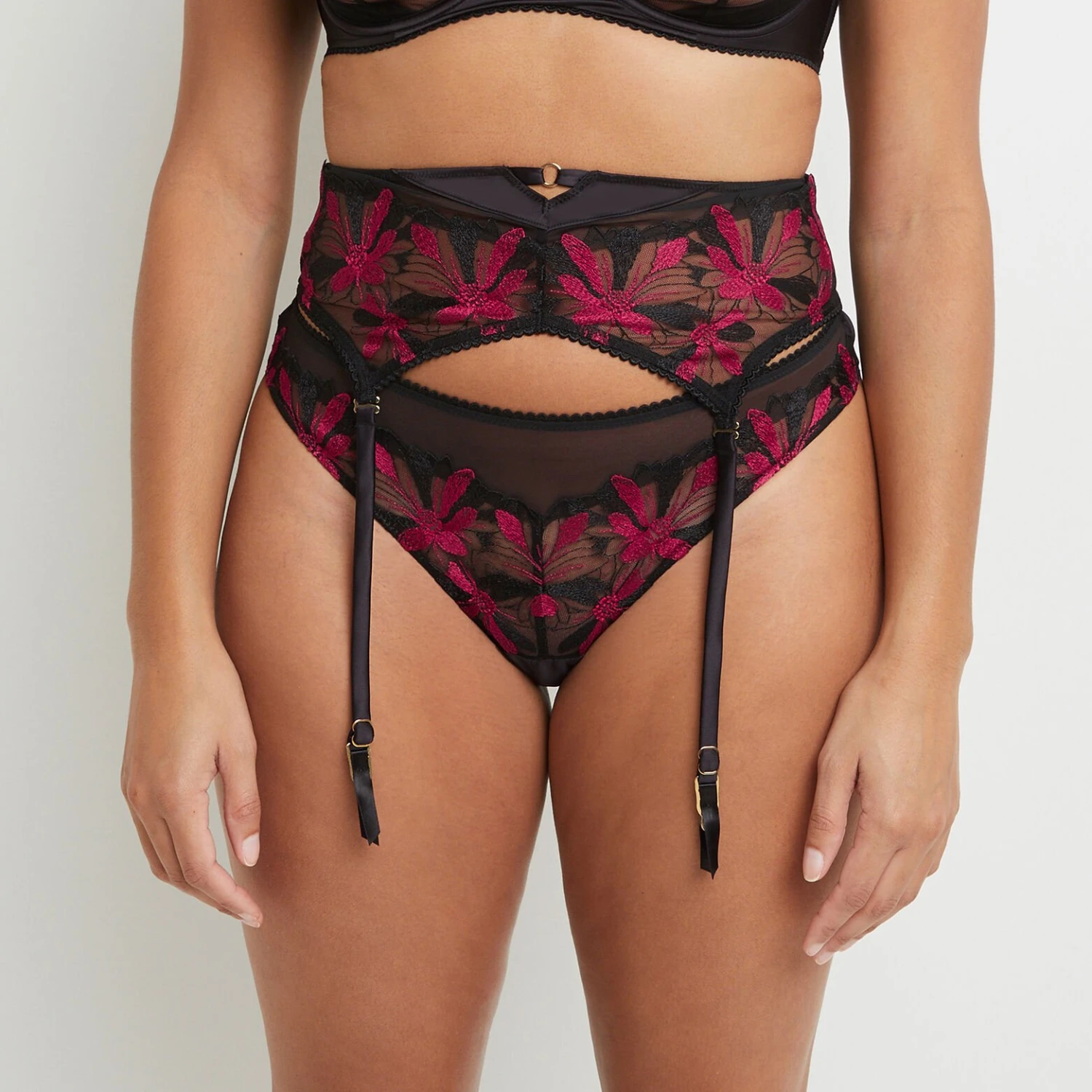 – attaches porte-jarretelles amovibles, ajustables et élastiquées