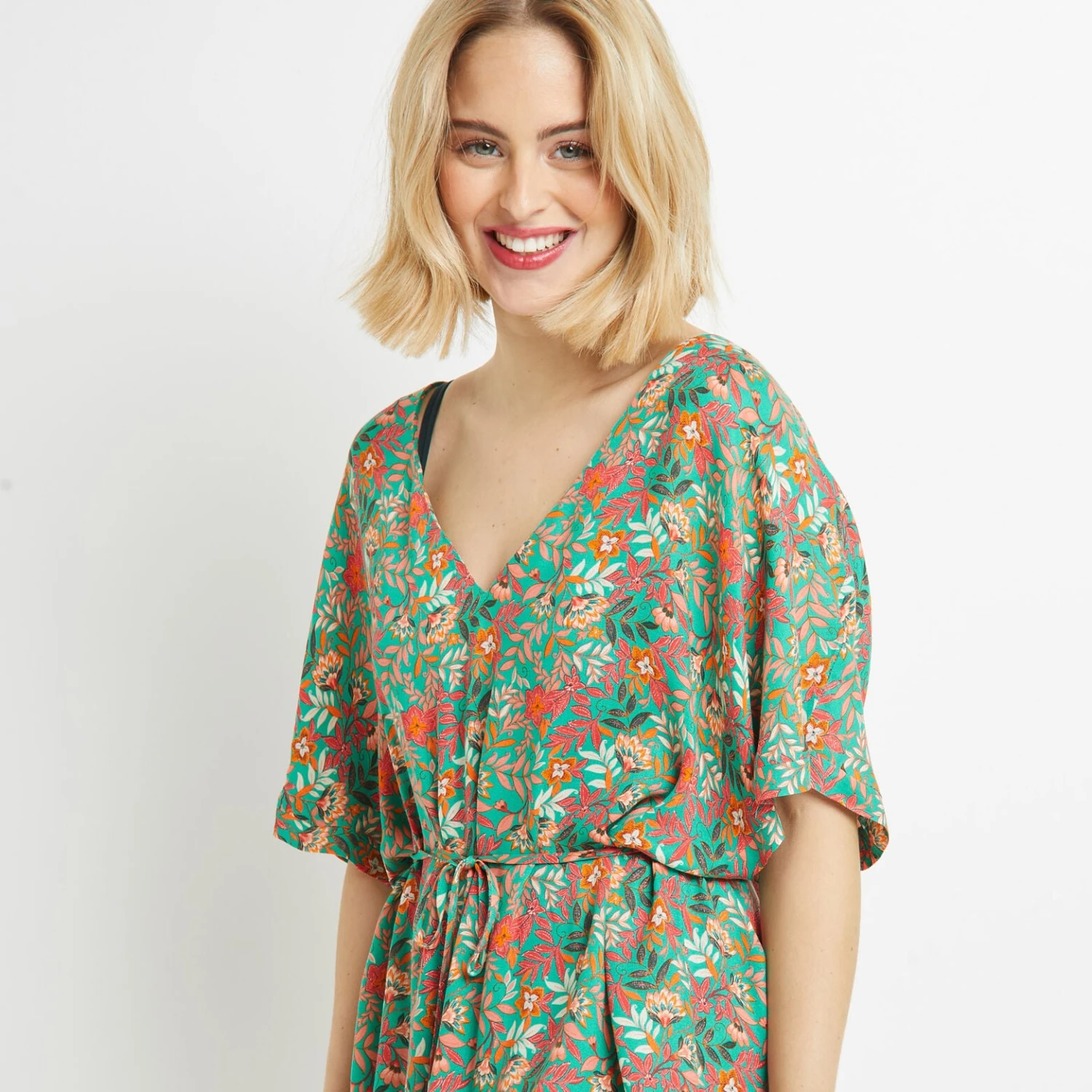 « Une ligne de plage conçue en viscose ecovero ou fibres recyclées (40% minimum), selon les pièces : paréo, tunique, maillots… leurs joyeux motifs fleuris, leurs couleurs pimpantes, leur douceur sur la peau… c’est le bonheur, point. »